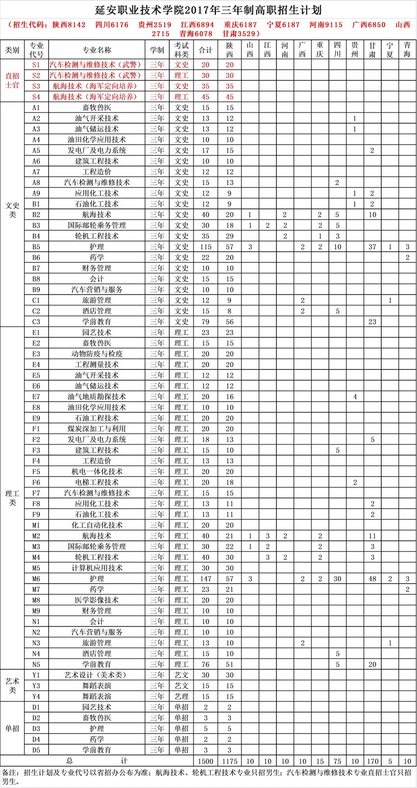 2017年海军、武警部队定向培养士官招生计划