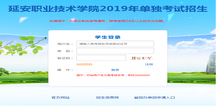 进入单独考试招生网上管理平台。考生无需注册,直接登录。