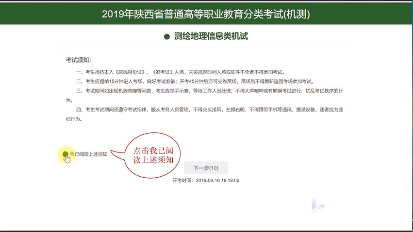 no.5 进入试卷说明页面,点击“我已阅读上述须知”,等待开考时间点击“开始答题”