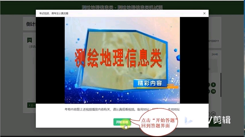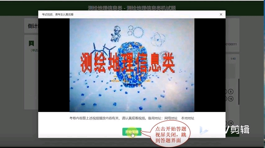 no.6 进入后页面弹出视频,观看视频,视频观看完后点击“开始答题”