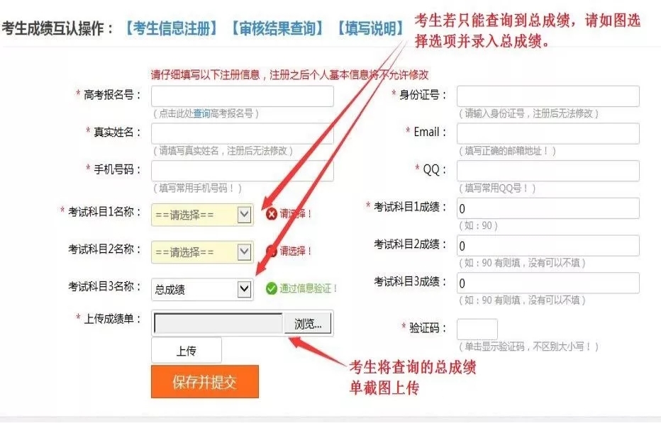 第二种情况:考生若只能查询到自己单招考试招生的总成绩,如下图下填报:
