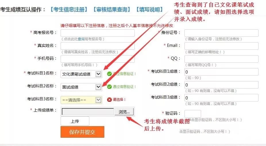 第一种情况:考生若知道自己文化课笔试成绩、面试成绩如下图填报: